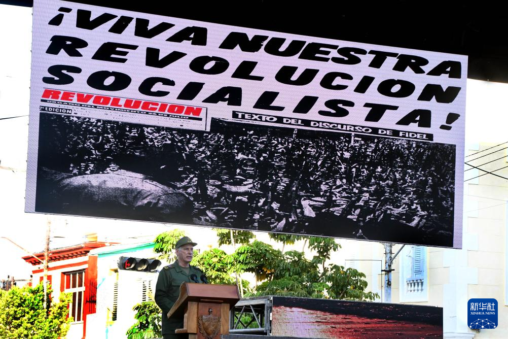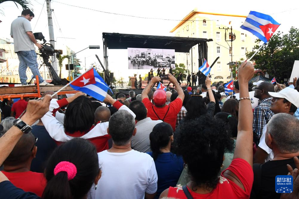 1961年4月16日,菲德尔·卡斯特罗正是在这一地点发表讲话,在悼念前一日美国飞机轰炸古巴空军基地遇难者的同时,宣布古巴开始实行社会主义革命。迪亚斯-卡内尔在集会上回顾了这段历史及古巴社会主义建设成就。他说,美国对古巴实施的封锁是古巴困难的主要原因。古巴不是一个失败国家,而是一个被围困的国家,一个面临经济、金融和能源等多重封锁的国家,一个受到威胁但不屈服的国家。