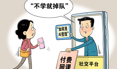 随着DeepSeek的爆火,一些打着“利用AI赚钱”噱头的“培训课程”悄然兴起。不少网友购买后却发觉“被骗了”,课程内容很多是网络信息拼凑而成,质量参差不齐,有的只是“挂羊头卖狗肉”。每当有新技术新应用出现,总能兴起一波“卖课”热潮。这些博主贩卖的不是知识,也不是能力,而是一种焦虑。AI带来的应该是“创新潮”,绝不是“卖课潮”。