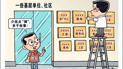 开展达标评比、创建示范活动,本是以标兵引领推动工作落实的有效之举。但是一些部门却将发牌视为“工作下沉”的象征,认为“挂牌即落实”,甚至将挂牌数量与考核排名挂钩,大搞“繁琐哲学”,动辄开发出上百项指标,以此下移压力。部分社会组织甚至以“达标创建”之名创收牟利,造成负面影响。