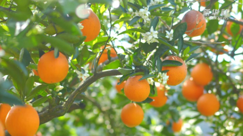 秀我中国丨重庆奉节:三峡四月橙飘香 花果同枝惹人醉