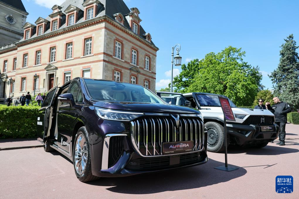 这是4月14日在法国首都巴黎的欧中汽车新生态合作交流会举办地拍摄的汽车。新华社记者 邬惠我 摄